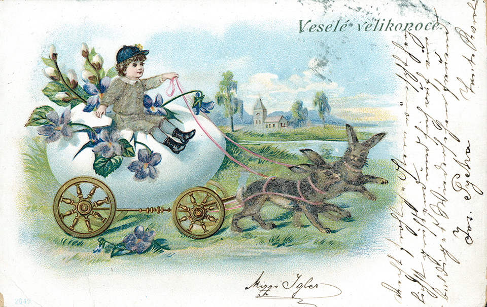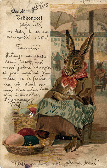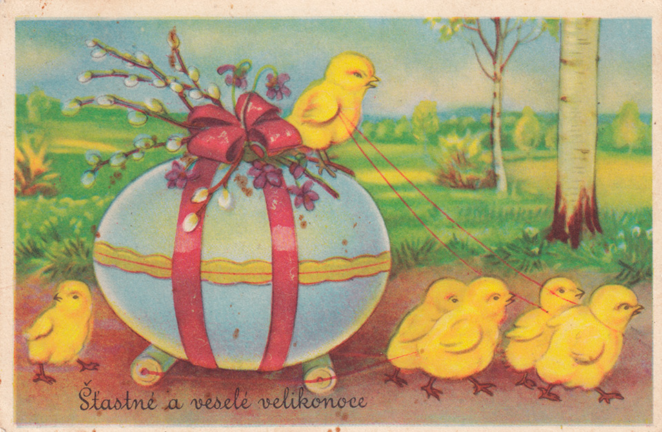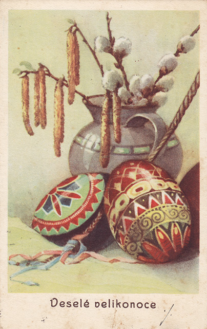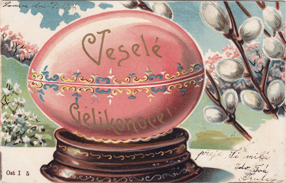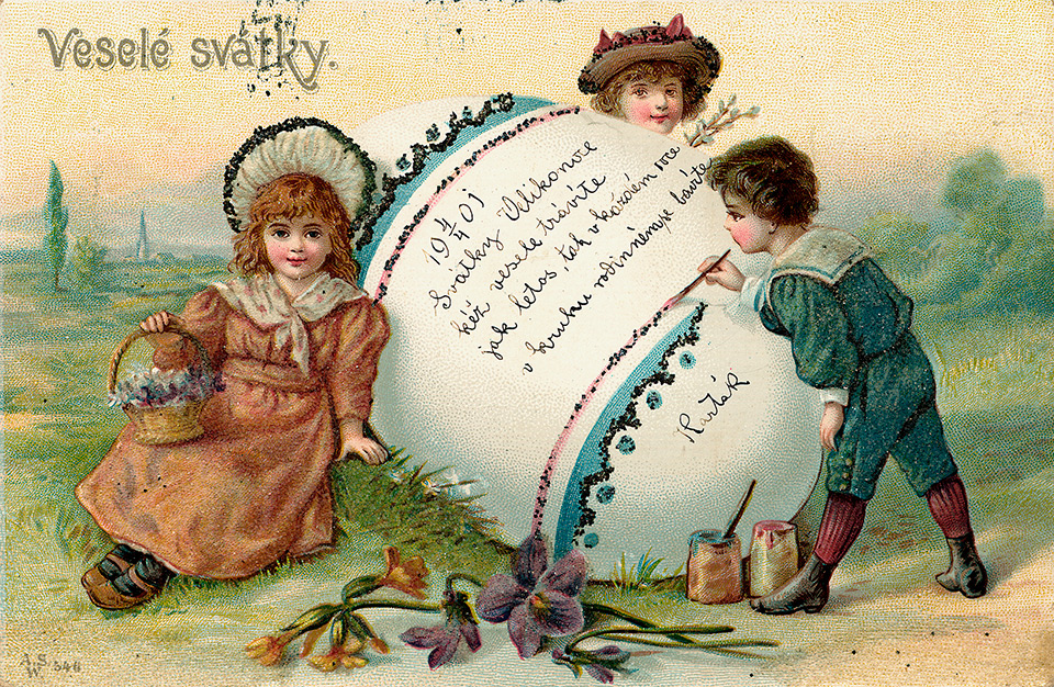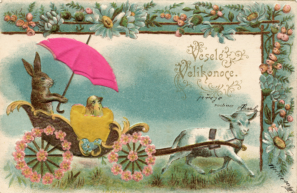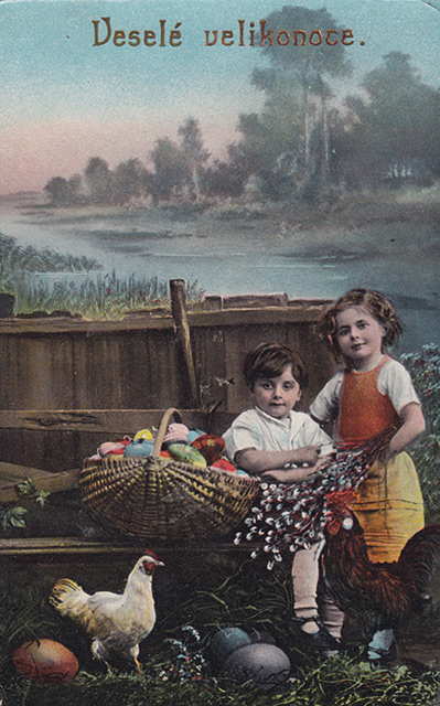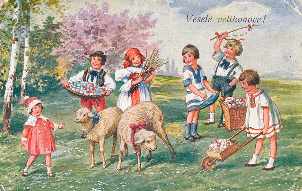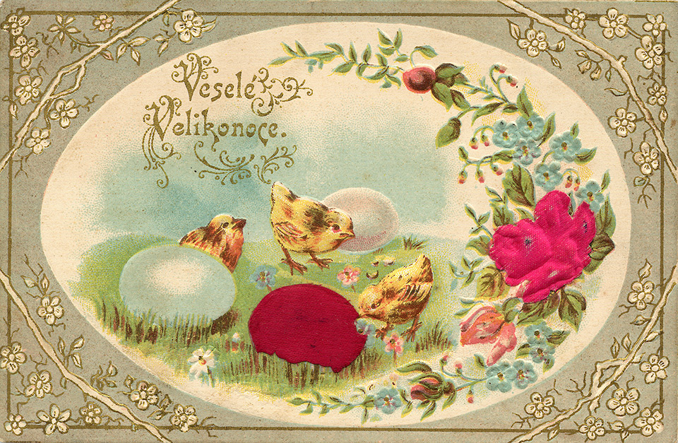 Není divu, že v případě pohlednic nalezneme velikonoční náměty více než v hojné míře a žádný tematický okruh není tak pestrý, nápaditý a oku lahodící. Velikonoční pohlednice září barvami a optimismem. Někdy nám mohou připadat až kýčovité, ale musíme si uvědomit, že jsou dokladem dobového vkusu a cenným historickým dokumentem.