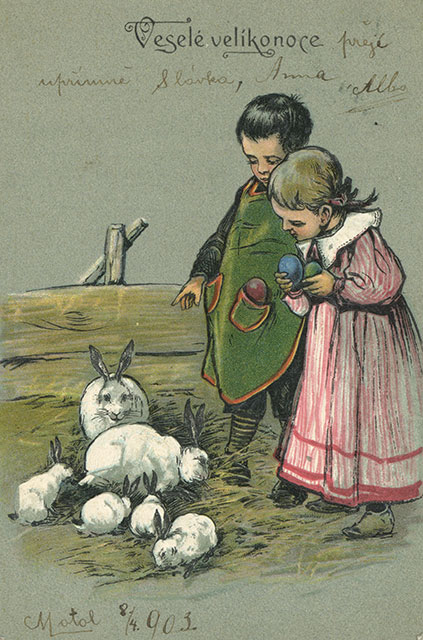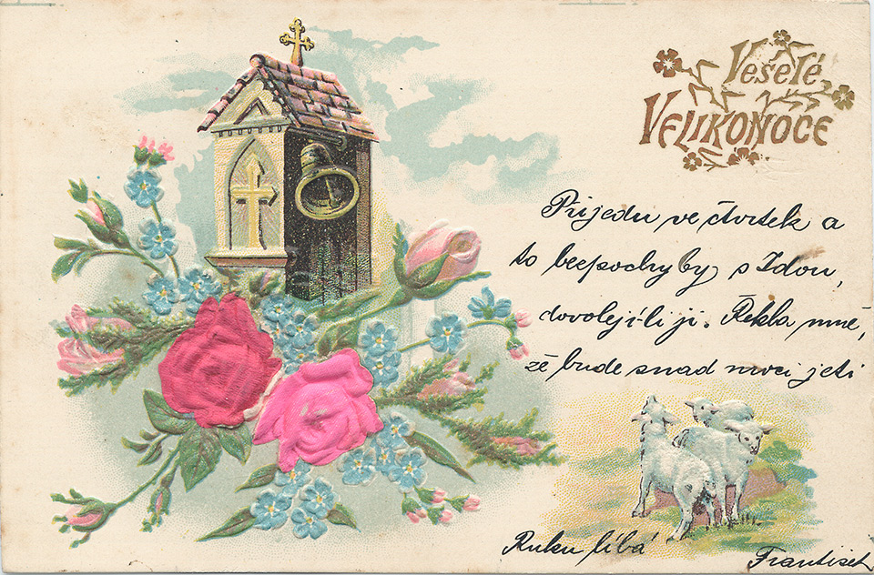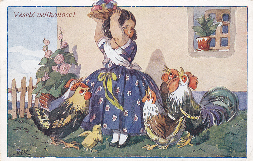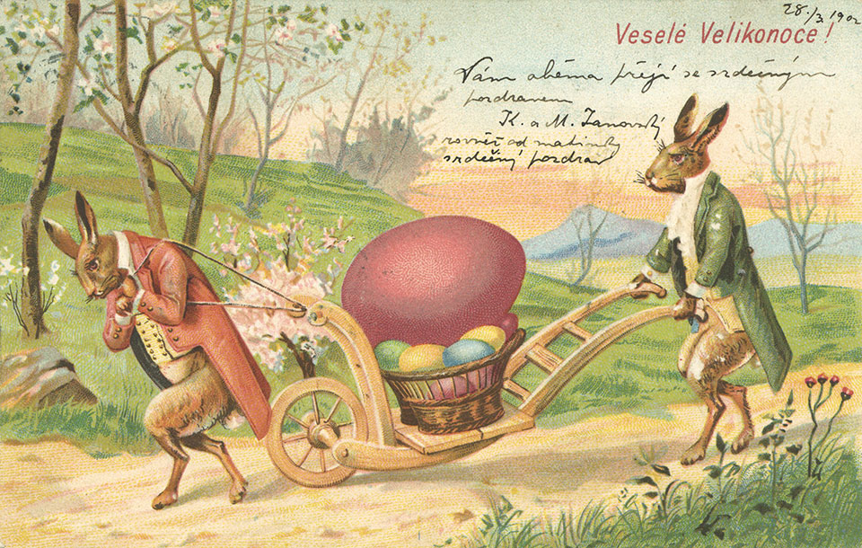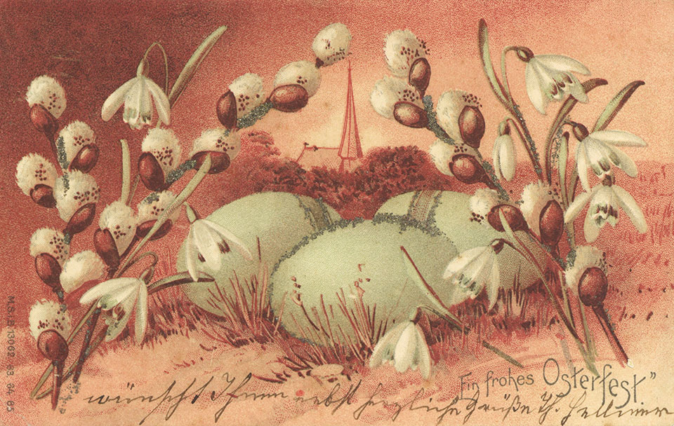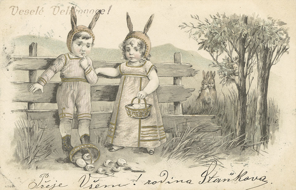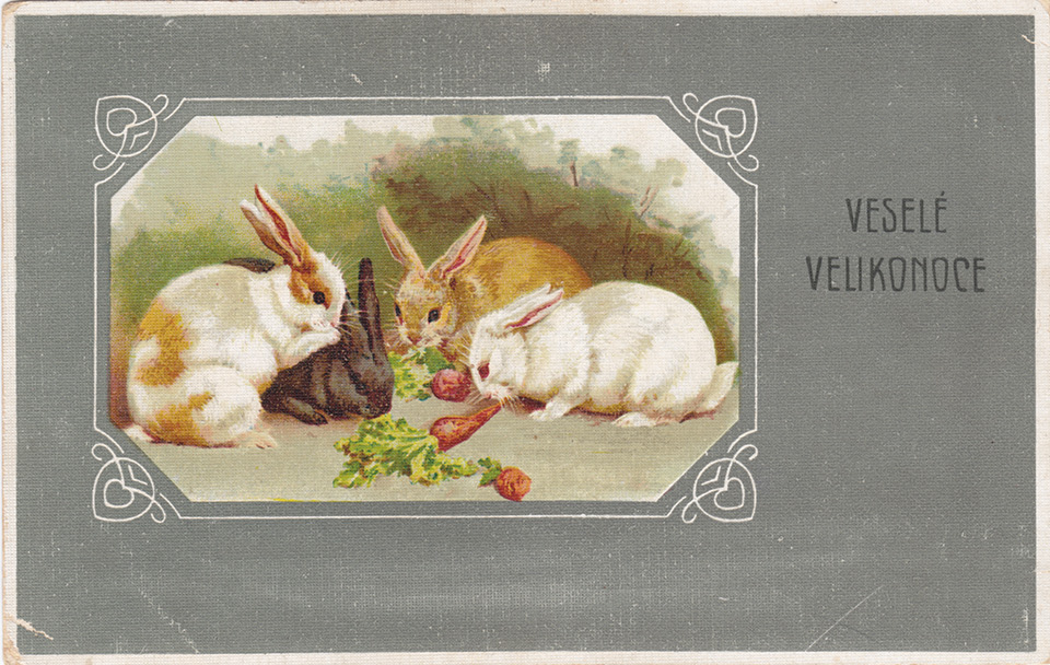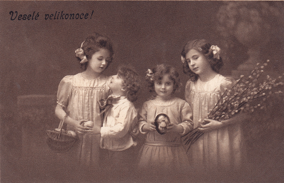 Není divu, že v případě pohlednic nalezneme velikonoční náměty více než v hojné míře a žádný tematický okruh není tak pestrý, nápaditý a oku lahodící. Velikonoční pohlednice září barvami a optimismem. Někdy nám mohou připadat až kýčovité, ale musíme si uvědomit, že jsou dokladem dobového vkusu a cenným historickým dokumentem.