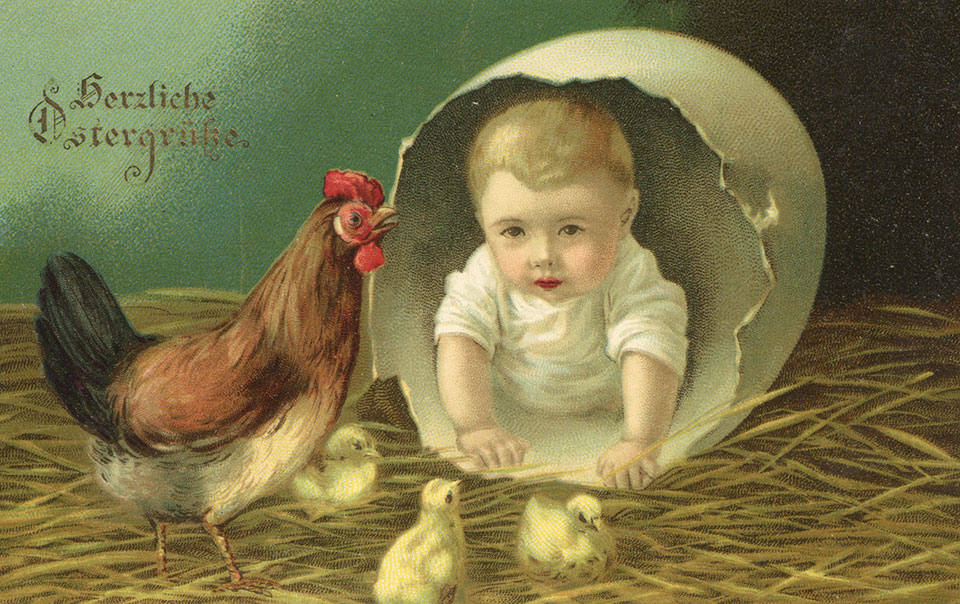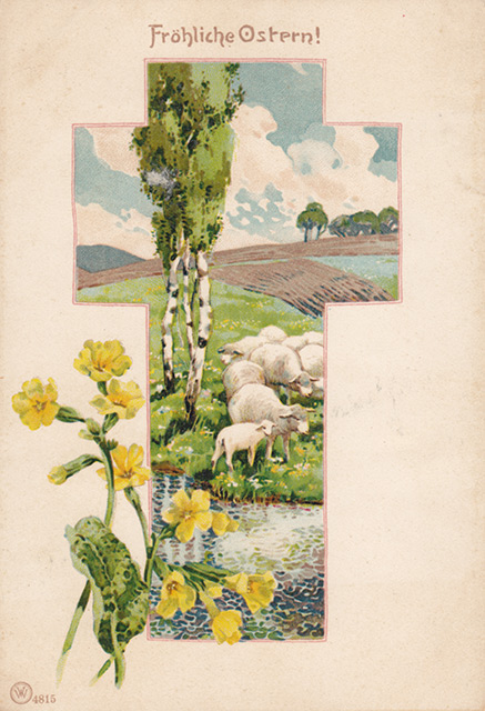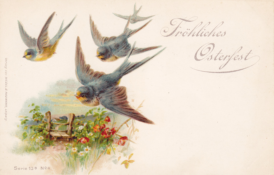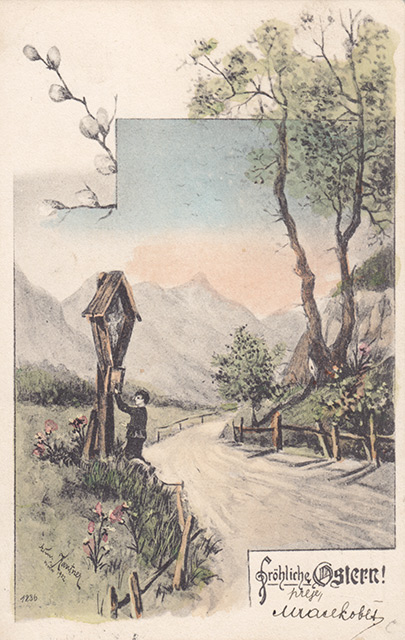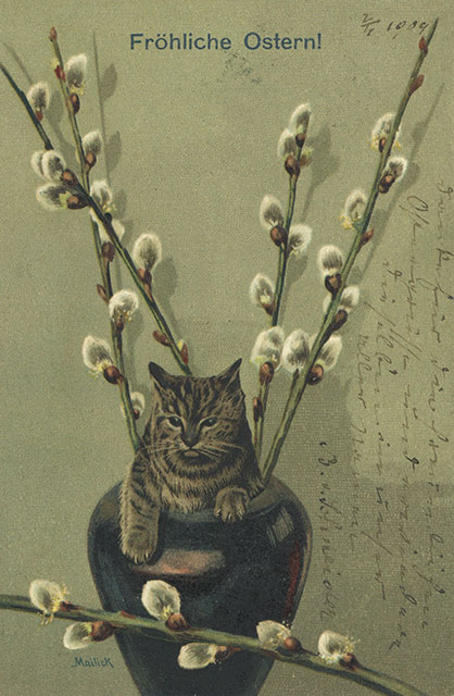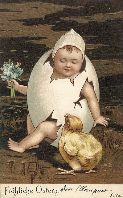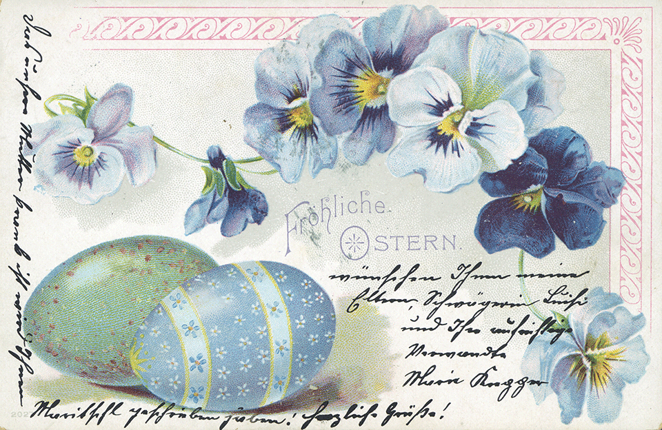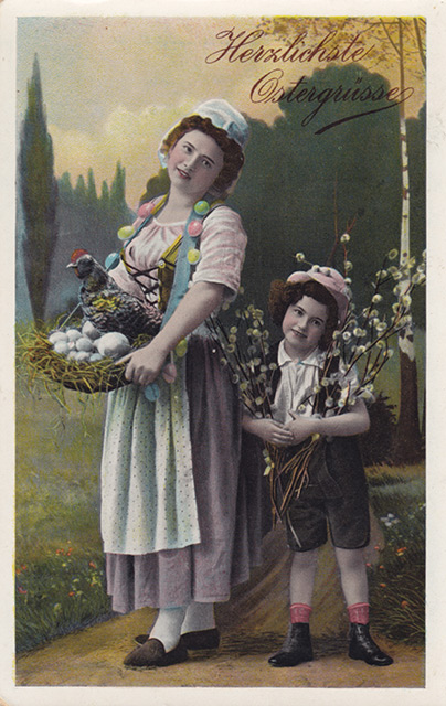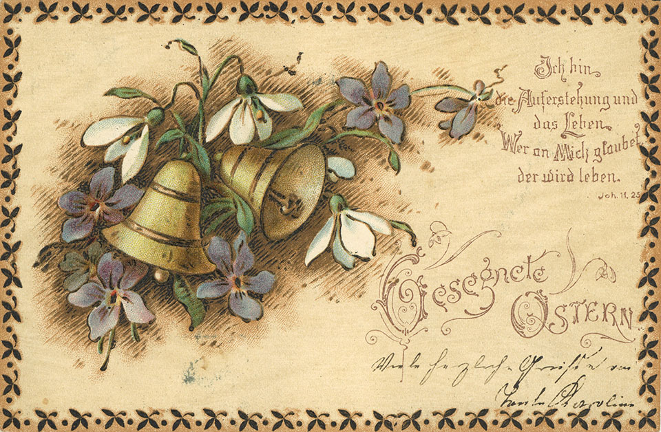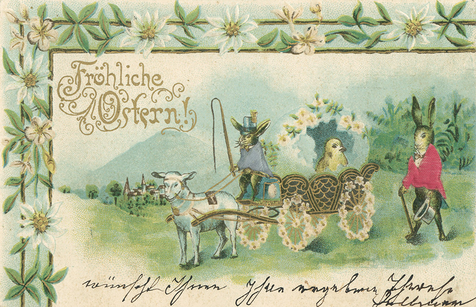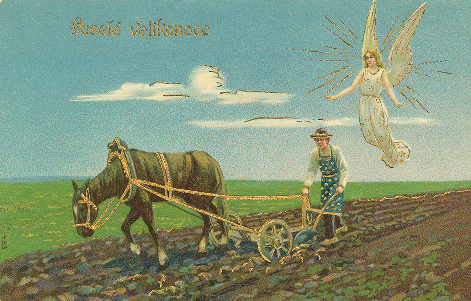 Není divu, že v případě pohlednic nalezneme velikonoční náměty více než v hojné míře a žádný tematický okruh není tak pestrý, nápaditý a oku lahodící. Velikonoční pohlednice září barvami a optimismem. Někdy nám mohou připadat až kýčovité, ale musíme si uvědomit, že jsou dokladem dobového vkusu a cenným historickým dokumentem.