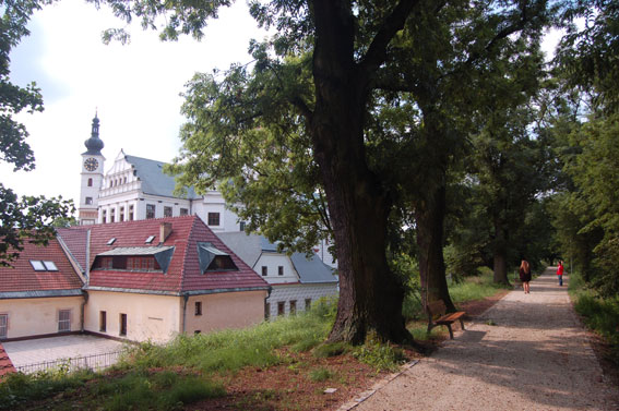 Protože zámek byl od počátku veden jako pevnost, výhled do krajiny musel zůstat v případě napadení volný. Zámecké valy tak zůstávaly po několik staletí zcela holé. Změna nastala až roku 1778, kdy byla provedena zahradní úprava na hradebních rondelech – bašty byly přetvořeny na služební zahrádky panských úředníků ubytovaných v prostorách zámku.